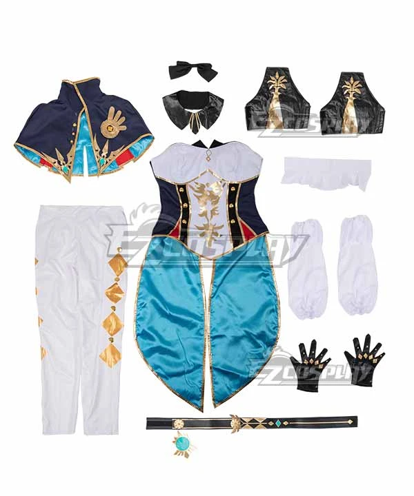 | Package Includes: | Cloak, Bowtie, Top, Sleeves, Gloves, Sash, Pant |